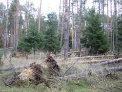 - 2007 roku (huragan "Cyryl") - 17 000 m3 uszkodzonego drewna, co przekładało się na około 90 000 sztuk połamanych i wywróconych drzew;